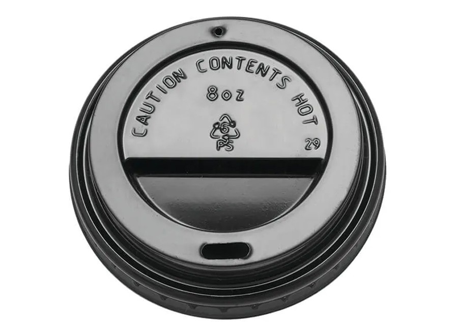 Durable black lid designed to fit 8oz cappuccino cups securely.