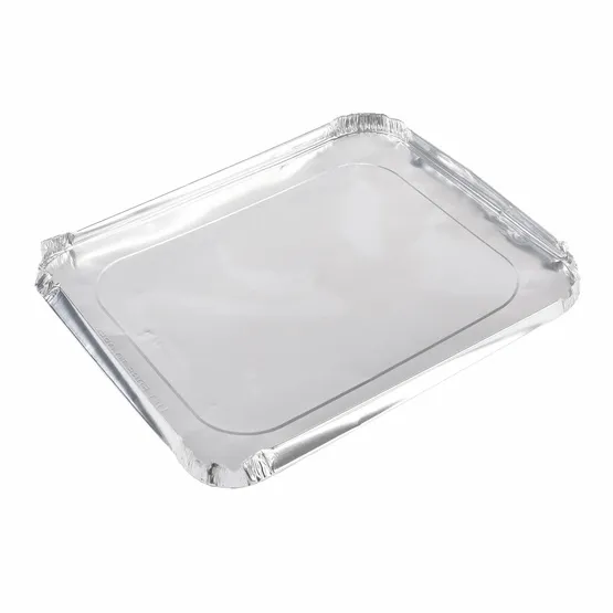 Food safe foil lid for Half Gastro Containers. The lid sits just inside the container and then the lip of the container is folded over the top to seal.