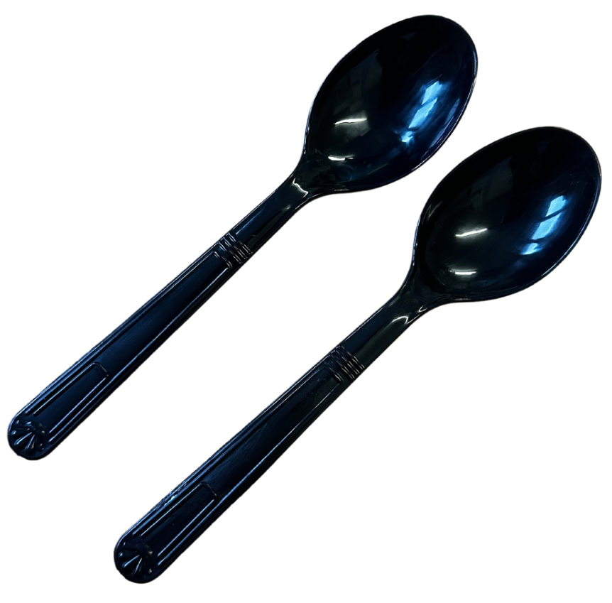 Black reusable dessert spoons made from durable PS material.