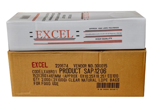 Clear 152 x 260 x 465mm Food-Grade Excel Bread Bags 6 × 10 × 18.25″ – 22MU (2 x 1000)