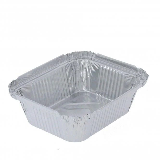 A food safe take away container or tray made from aluminium foil. Rectangular in shape (121 x 94 x 34mm) and with a approximate capacity of 250cc/ml, ideal for take aways. Perfect for curries, rice, chinese food and any food that needs re-heating in the oven at home. Not suitable for microwave use